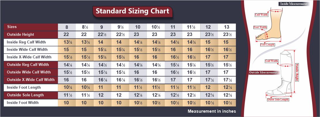 Thank you for your question! We've attached the updated size chart here and on the TuffRider Men's Baroque Field Boots product page for your reference. It now includes measurements for the extra-wide calf, ensuring the perfect fit. If you have any further questions, feel free to ask!